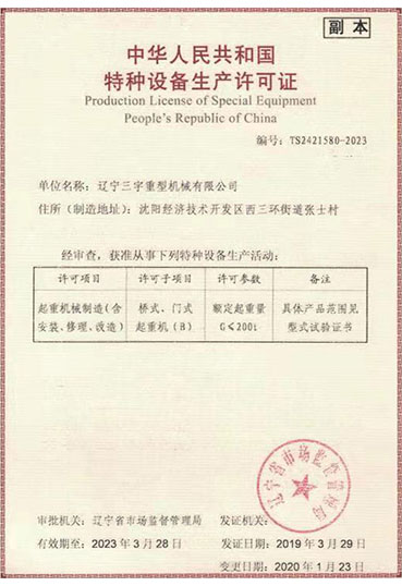• 三宇人將以“創(chuàng)三宇國(guó)際品牌,興中華民族工業(yè)”為己任,努力奮斗,不懈奮斗,加快發(fā)展,繼續(xù)譜寫(xiě)中國(guó)起重機(jī)械制造史上的新篇章。